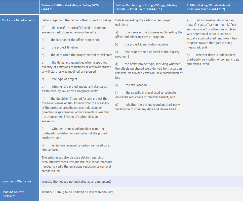 - A business entity that is marketing or selling voluntary carbon offsets within the state (§44475)