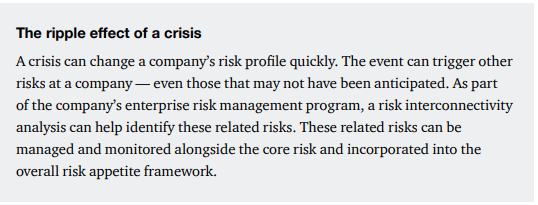 - Not seeing the crisis for the trees: A too-narrow focus on the immediate or perceived issue, without considering other potentially impacted areas, is understandable. But that can lead to a cascade of secondary shocks and crises.