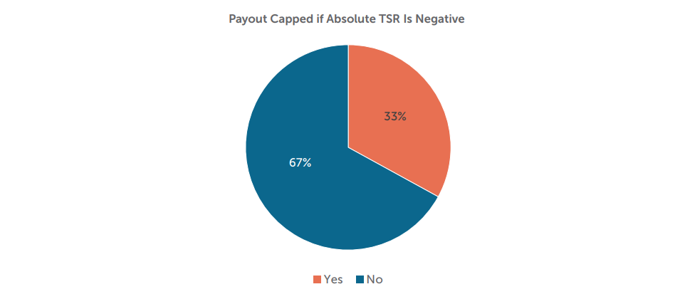 One-third of companies build in a safeguard for down markets: an absolute TSR cap that limits payouts when shareholder returns are negative, no matter how strong relative performance is.