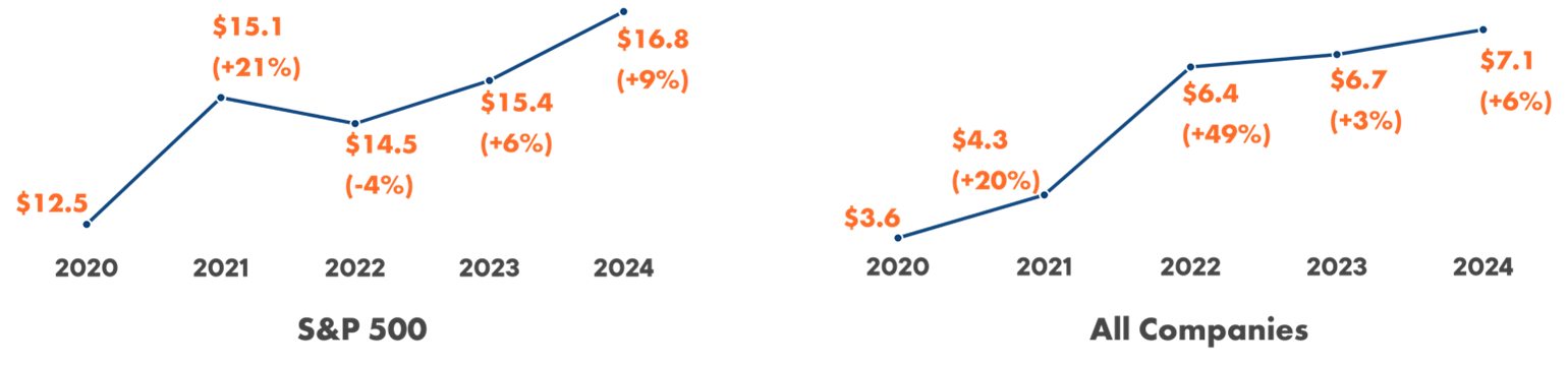 Note: Data is in millions USD and reflects fiscal year 2024 data that was reported and voted on in 2025.