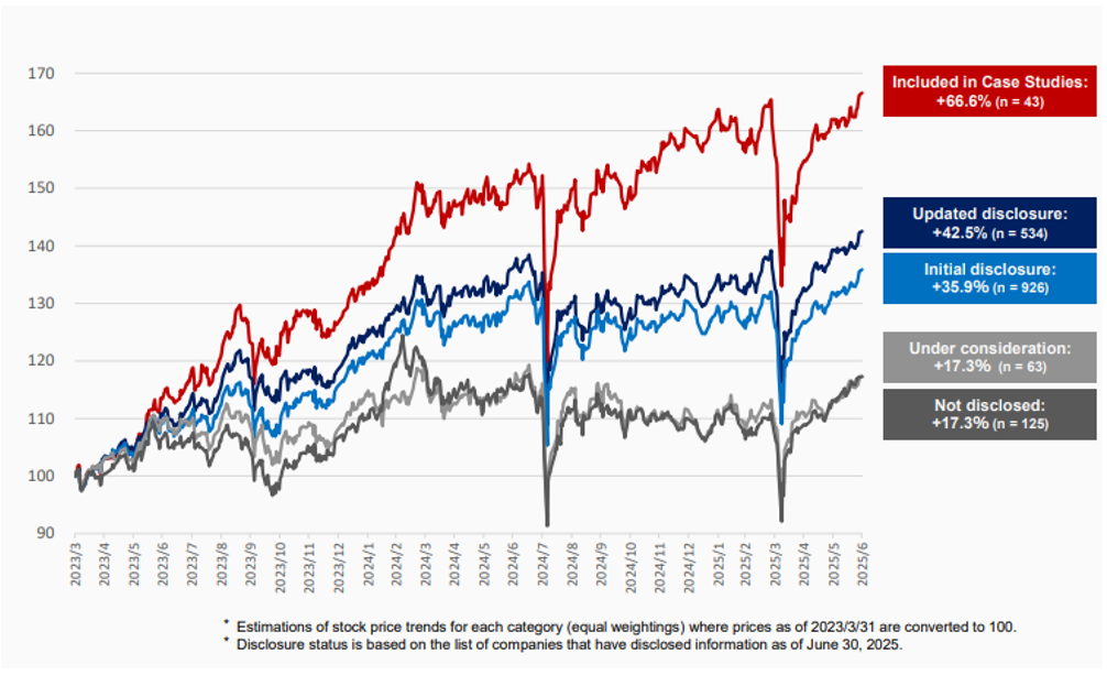 Since the issuance of the Request, both domestic and international investors have shown strong interest in how companies have been responding. To raise investor awareness of corporate initiatives and to further encourage companies’ efforts, TSE began, in January 2024, publishing a list of companies that have made disclosures pursuant to the Request (hereafter, the “List”). While the List includes only companies that have made such disclosures, and therefore does not explicitly identify those that have not, some securities firms and investors have reportedly engaged in reverse engineering, using the List to infer which companies had not responded and to assess companies’ willingness to engage within each industry. As a result, peer pressure appears to have intensified within industries, further promoting responses from companies.