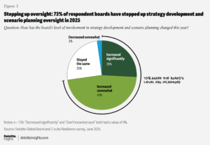 This shift in concerns may reflect several factors. Boards and C-suites are generally focusing on growth, acknowledging that talent and technology have significant potential to drive long-term, resilient business value. They also likely recognize the need to continue to monitor the changing geopolitical environment.
