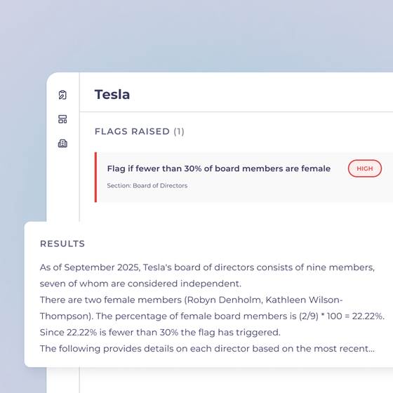 The challenge stewardship teams face is not a shortage of data. Proxy statements, supplemental filings, 8-Ks, 10-Ks, and company disclosures contain enormous amounts of relevant information. The challenge is turning it from unstructured to structured information, applying a firm’s own policies consistently across thousands of meetings, and doing so quickly and accurately enough that meaningful engagement is still possible.
