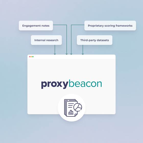 In practice, building and applying custom policies has historically been slow and expensive. The process typically involves significant back-and-forth between internal teams and external service providers, with limited ability to test how a policy change would have affected historical voting outcomes before it is deployed. ProxyBeacon allows users to define voting policies in plain language, apply them by market, sector, or theme, and backtest them against historical data — making policy design substantially more self-serve and the cost of iteration much lower.