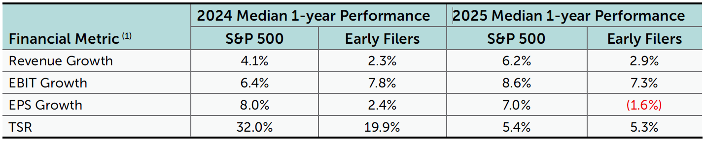 (1) Reflects companies in the S&P 500 as of February 2026. For the S&P 500, financial performance and TSR are as of September 30, 2025 and September 30, 2024. For Early Filers, financial performance and TSR are as of each company’s fiscal year end.